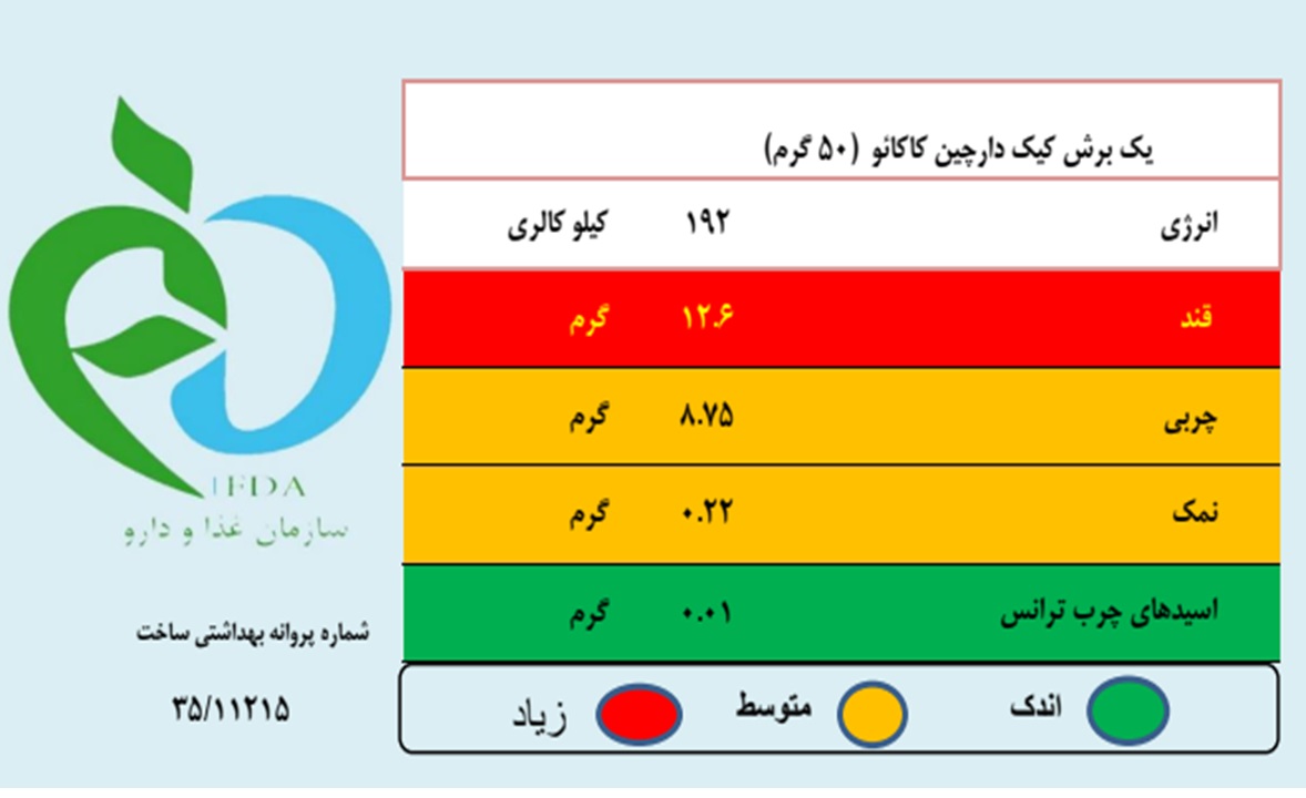- ترکیبات بر اساس پروانه ساخت: آرد گندم، شکر، شیر خشک بدون چربی، بیکینگ پودر، امولسیفایر E471، وانیل، نمک تصفیه خوراکی، دارچین، پودر کاکائو